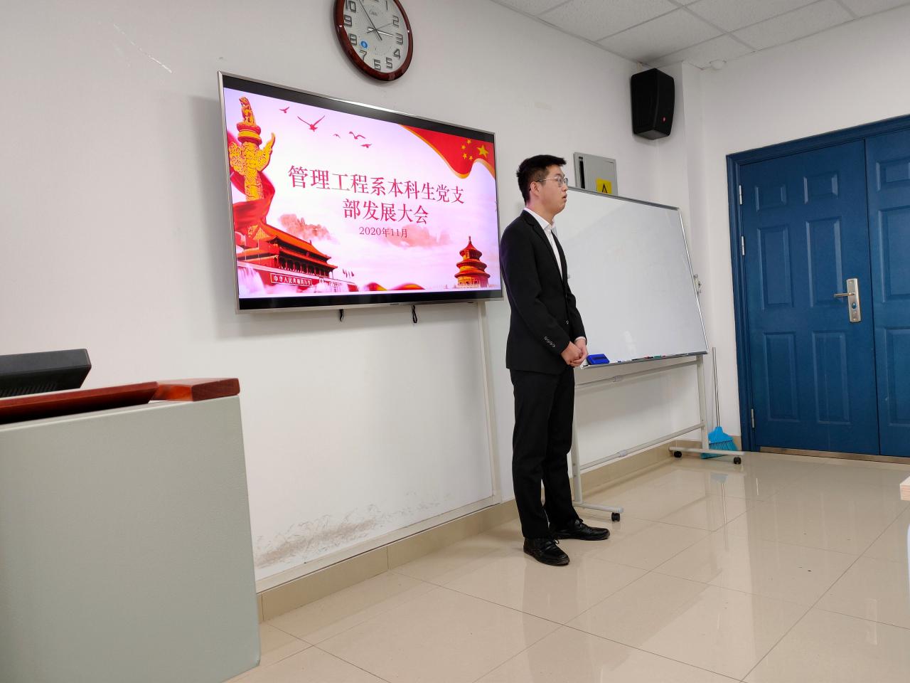 (通讯员 张洋)2020年11月24日下午14点,304永利集团官网入口管理工程系本科生党支部于文科大楼417召开了新党员发展大会,会议讨论关于发展杨育等9位同志成为预备党员的事宜。本次会议由陆媛主持,参会人员有党支部书记李博老师、6位正式党员、10位预备党员与9位发展对象。
