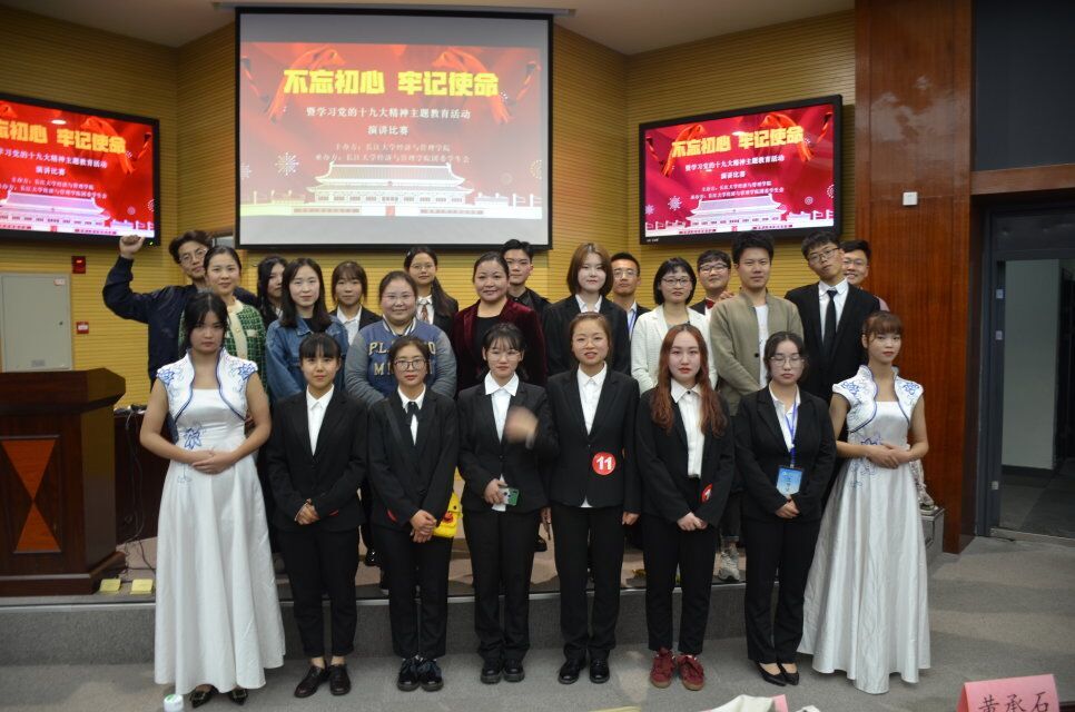 (通讯员 王巧)11月6日晚7时,304永利集团官网入口于农科大楼1056报告厅举行“不忘初心,牢记使命”主题演讲比赛决赛。党委副书记王中梅、分团委书记孙萌,以及辅导员杨雪、桂凯丽、任玉婷、黄承石担任评委。永利集团官网近300名学生观看本次演讲比赛。