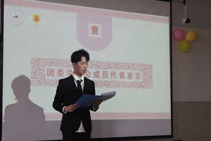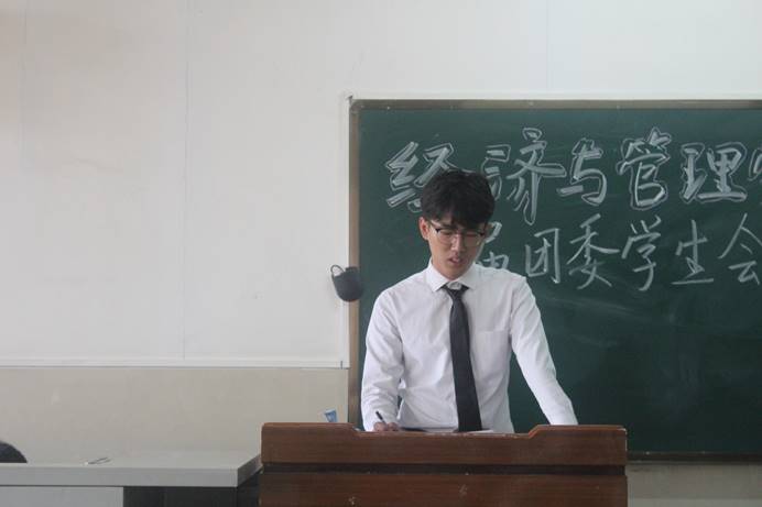 大会伊始,团委学生会代表张文龙同学的发言为本次大会拉开了序幕。他讲到学生干部的初衷是为老师同学服务,应当从“坚守职责,无私奉献”、“高度自我控制”、“卓越的业务能力”、“坚定党的信仰,弘扬社会主义精神”四个方面严格要求自己。