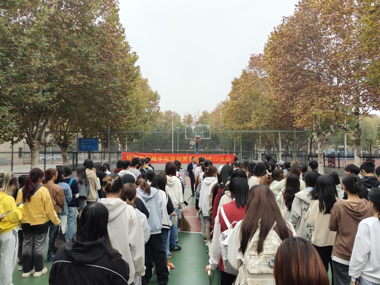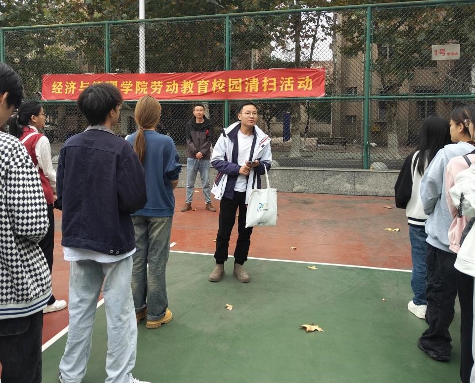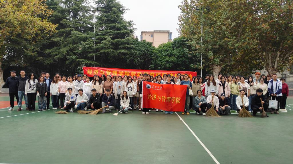 在合影留念后,师生们开始了校园清扫工作。大家分工明确,秩序井然。在劳动过程中,同学们发扬了不怕苦、不怕累的精神,展现了经管学子的良好风貌。