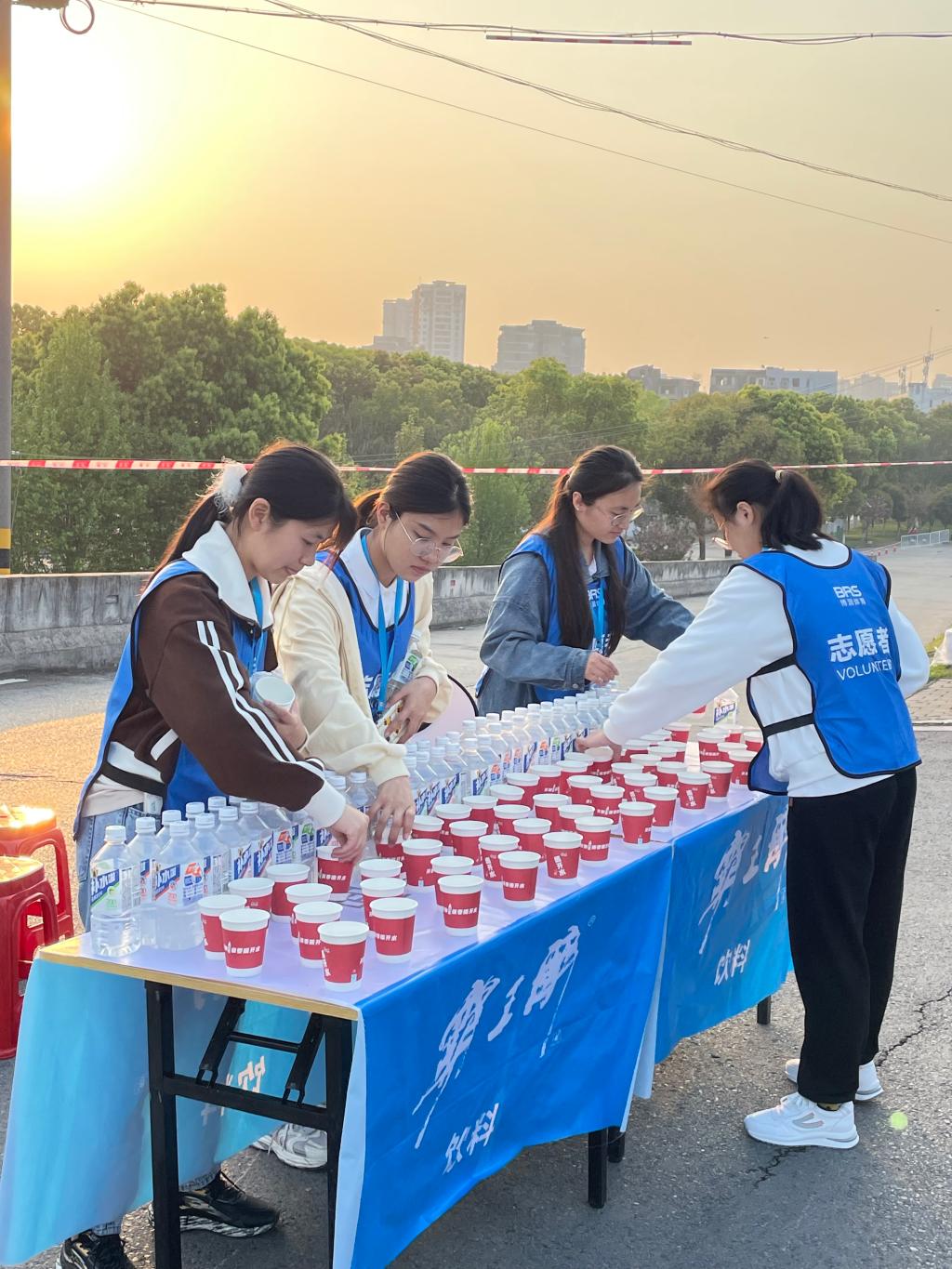 为确保本次赛事的成功举办,展现荆州良好的城市形象以及志愿者们甘于奉献的精神风貌,学院根据学校要求招募了85名志愿者参与赛事服务,并按要求完成了相应服务培训。比赛当日,志愿者们精神抖擞,严阵以待,凌晨4:30便在乘车集合点等候,准备奔赴赛场,为马拉松赛开跑做好准备工作。早上5:00所有志愿者到岗,踏上了属于他们的“马拉松”之路。他们主要集中在5公里和15公里补给站,为参赛选手们提供饮水食品补给等服务。