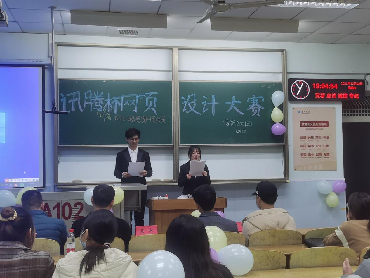 (通讯员:吴佩云)小雪已过,寒意渐浓。十二月到来,抓住2021年的尾巴,由信管协会主办的第十二届网页设计大赛之“迅腾杯”于2日晚在304永利集团官网入口教学楼13教A区102内正式举行。此次比赛展秉承着“弘扬创新精神,编织科技梦想”的主旨普及必要的前端知识,提升大学生的创新能力和编程技术。此次活动的对象为在20级的信管同学中选出的十组参赛选手。