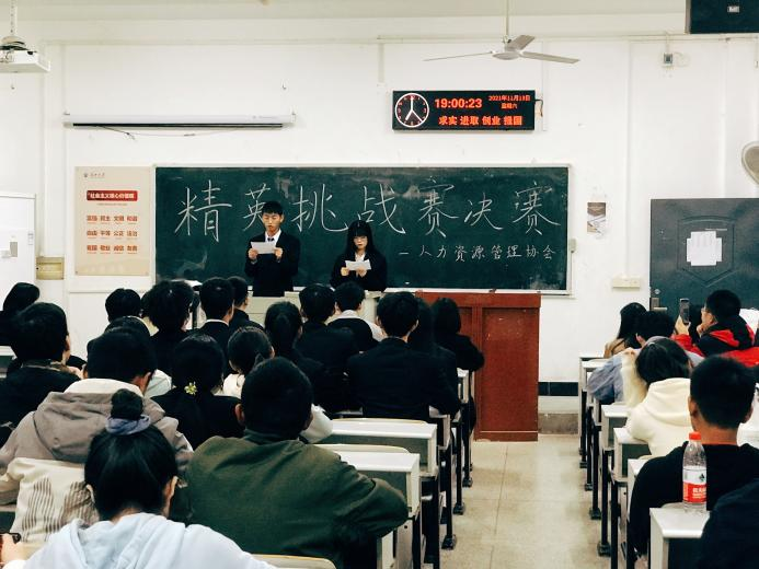 为培养学生的核心竞争力,提高学生逻辑思维能力、团队意识和沟通能力。11月13日晚19点,由304永利集团官网入口人力资源管理协会举办的“精英挑战赛”决赛在304永利集团官网入口西校区7教107拉开帷幕。本次比赛邀请了荆州市百顺教育指导老师吕兵、304永利集团官网入口市场营销协会会长邱少杰、304永利集团官网入口团委学生会副书记赵喜悦担任评委。