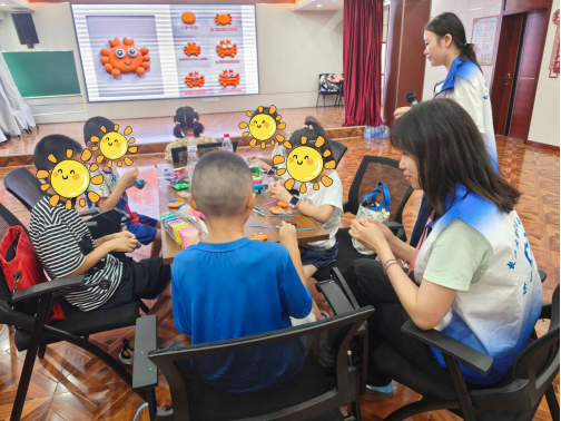 午后时光里,托管班变身“成长加油站”。志愿者分组开展学业辅导,孩子们在“互助答疑”中形成浓厚学习氛围;“粘土手工”实践课上,彩色粘土在稚嫩的手中幻化成小螃蟹、冰淇淋、创意蛋糕等作品,10余件充满童趣的创作不仅是想象力的迸发,更成为孩子们赠予志愿者的暖心礼物,诠释着“付出与感恩”的双向奔赴。