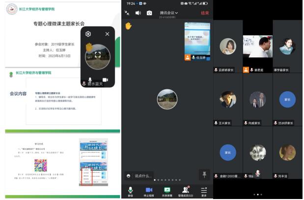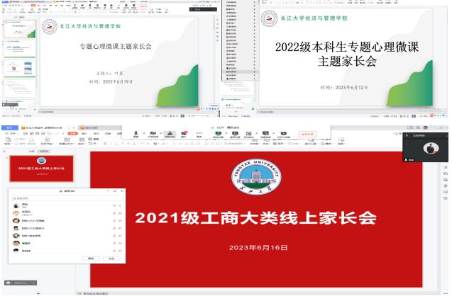 本次家长会由辅导员组织开展,同学生家长一道学习由湖北高校心理健康专家服务队打造的专业心理微课。会上,老师们就大学生常见的心理问题向家长们进行知识科普,讲解健康的家庭环境对于学生心理健康的重要意义,并从学生的学习、生活、就业等多角度分析了大学生目前的心理状况,引导家长树立正确的心理健康教育观念,呼吁家长们通过积极参与孩子生活、强化交流沟通等方式给予孩子充足的心理温暖和情感支持。