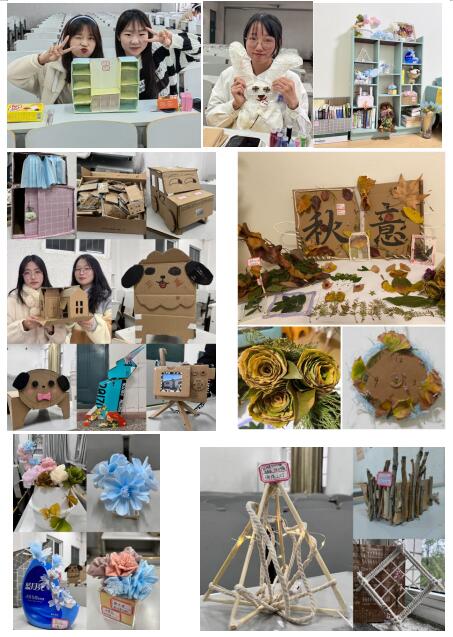变“废”为宝活动组织集中制作。11月13日下午3点,同学们相约在心语小屋或教室,展开热烈讨论,充分发挥想象力,一起构思作品。有用废纸箱做的“可爱狗仔”、“梦之屋”、“相机”等;有用树叶、树枝与纸壳制作的“落叶知秋”、“书签”、“风中的时钟”、“银叶玫瑰”等;还有用纸巾、口罩和洗衣液桶做出的“蝶恋花”花篮等57个优秀手工作品。因为有爱,所以用心,同学们利用自己的巧手,发挥奇思妙想,对这些生活中常见的废品赋予了新的生命和价值。