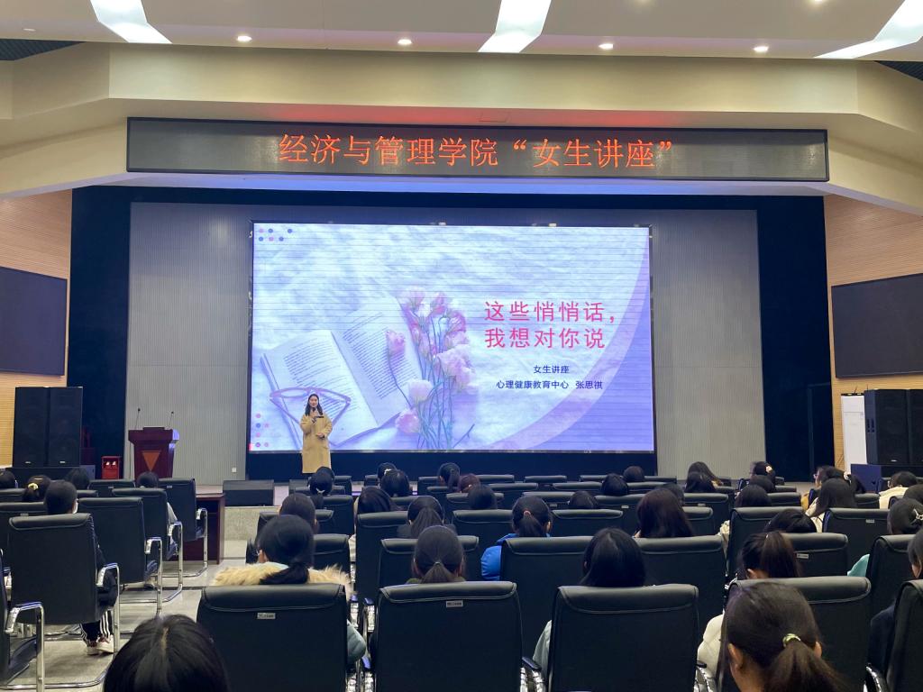 (通讯员:单晴蜓)为引导女大学生形成自尊自爱、自立自强的价值取向,更加自信从容、积极昂扬地面对生活。304永利集团官网入口于11月24日晚19点在西校区农科大楼1058报告厅开展了以“这些悄悄话,我想对你说”为主题的女生讲座。此次讲座由学生心理健康教育中心的张思祺老师主讲,2021级全体女生参会。讲座由新生辅导员李云妮老师主持。