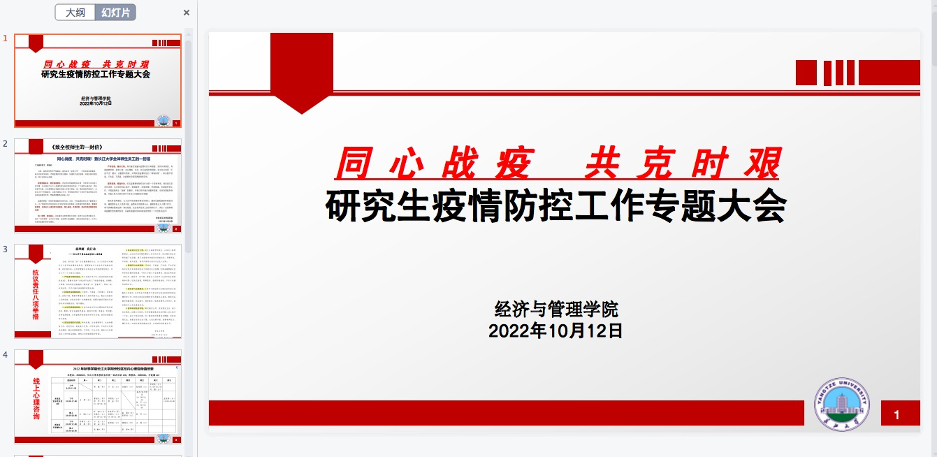 (通讯员:彭书范)2022年10月12日晚,同心抗疫,共克时艰,304永利集团官网入口召开了研究生疫情防控工作专题大会,研究生辅导员朱翠玲和黄承石老师主持和参会,学院全体研究生参加会议。