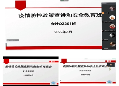 (通讯员:张杰)为进一步落实国家疫情防控政策,加强学校疫情防控要求,结合当前毕业生安全离校、防溺水、学生考试等相关安全教育要求,经济与管理学院研究生各年级各班于6月1日—6月5日采取线上线下相结合的方式,面向全体研究生召开了“加强疫情防控和安全教育”主题班会。