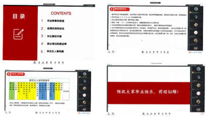 会议伊始,朱翠玲老师详细讲述了毕业生体检、学位授予、报到证办理等需要关注的时间节点以及毕业季注意事项,强调疫情期间,一定要严格听从学校安排,做到非必要不返校,为自己和他人的生命安全负责。会议中,朱老师也为毕业同学梳理了毕业离校手续,希望同学们都可以顺利做好毕业前最后一项工作。接着,朱老师重点强调了毕业生就业工作,结合“一生一策”摸排情况,动员未就业的同学们抓住尽快就业。最后,针对彭宁、吴杰提出的等毕业班就业、人事档案调动的问题,朱老师也依据学校相关规定进行解答。