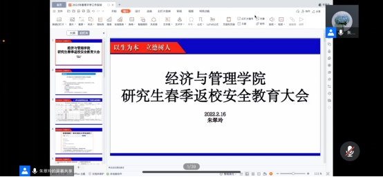 (通讯员:程思佳)为了落实学校2022年春季学期开学的相关工作,引导学生做好疫情返校期间的各项事宜,304永利集团官网入口于2月16日下午4:00,通过腾讯会议召开研究生返校安全教育大会。全体研究生参加了本次会议,会议由辅导员朱翠玲老师主持。