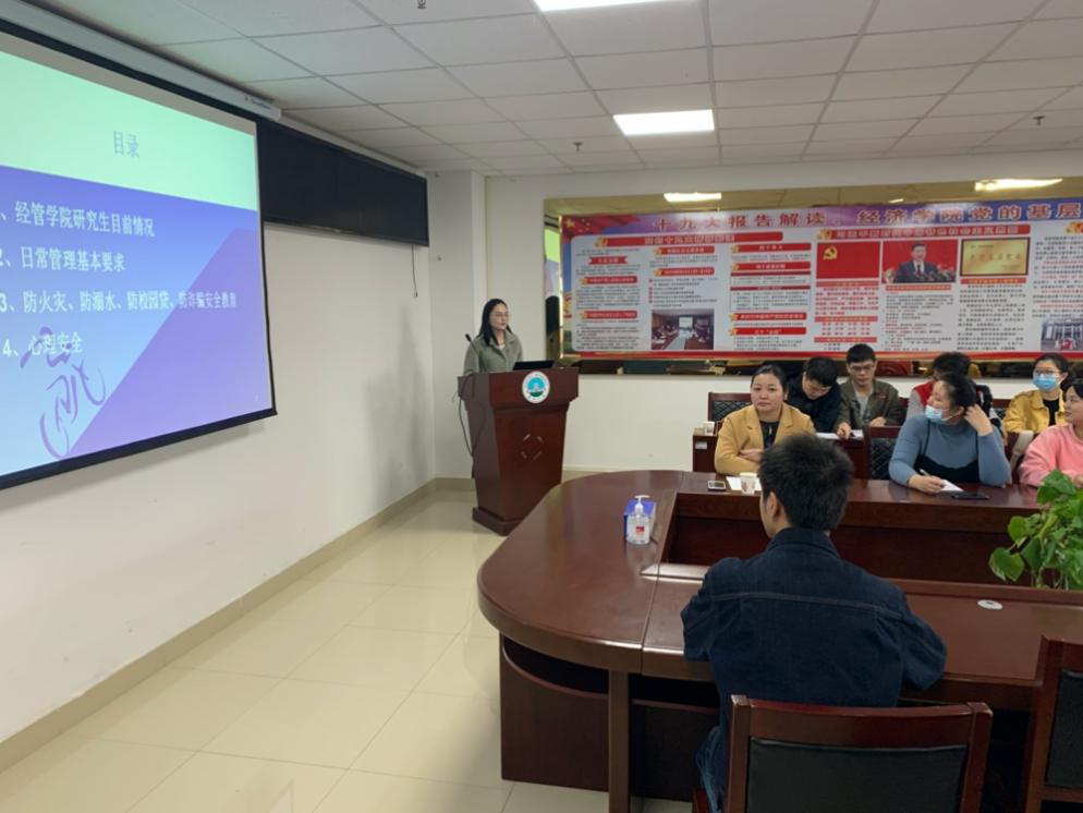 首先,辅导员朱翠玲讲解了校纪校规,梳理了研究生日常管理工作思路,要求同学们要提高防火灾、防溺水、防校园贷、防诈骗、防艾等安全意识,加强关注自身和同学心理安全。作为学生骨干,要做到“及时发现、及时上报”。