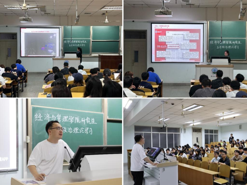 (通讯员 周汪洋 陈梦冉)为深入学习习近平新时代中国特色社会主义思想,提升永利集团官网研究生政治理论素养。学院于5月15日19:00,在13教A-204教室开展研究生五月政治理论学习活动。本次活动由院研究生会组织开展,研究生辅导员贺雄、兼职辅导员陈梦冉以及全体24级研究生到场参会。