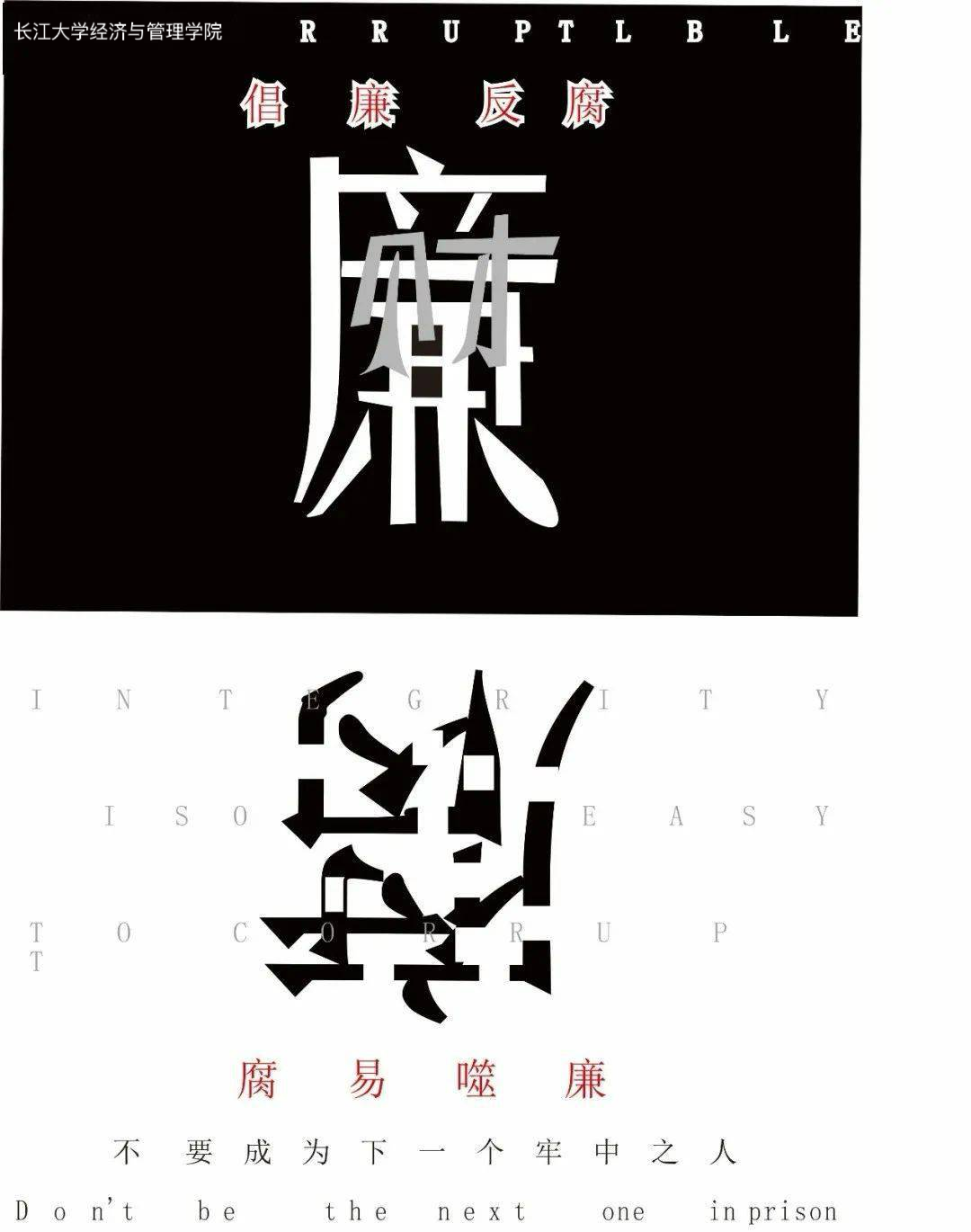 海报通过黑白对比突显“廉”与“腐”的主题,传达出“廉能生财,腐则吞廉”的警示。提醒我们,清白能带来财富,而腐败却会侵蚀一切。若陷入腐败,最终不仅会自毁前程,甚至可能面临法律的制裁。