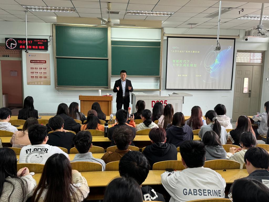 (通讯员:马思)2024年4月11日,304永利集团官网入口邀请优秀校友、育山教育科技有限公司创始人吴云英老师为学生做“智能时代下,大学生成长规划”为主题的生涯规划交流分享会,分享会由304永利集团官网入口副院长王华强主持,学院180名学生参加。