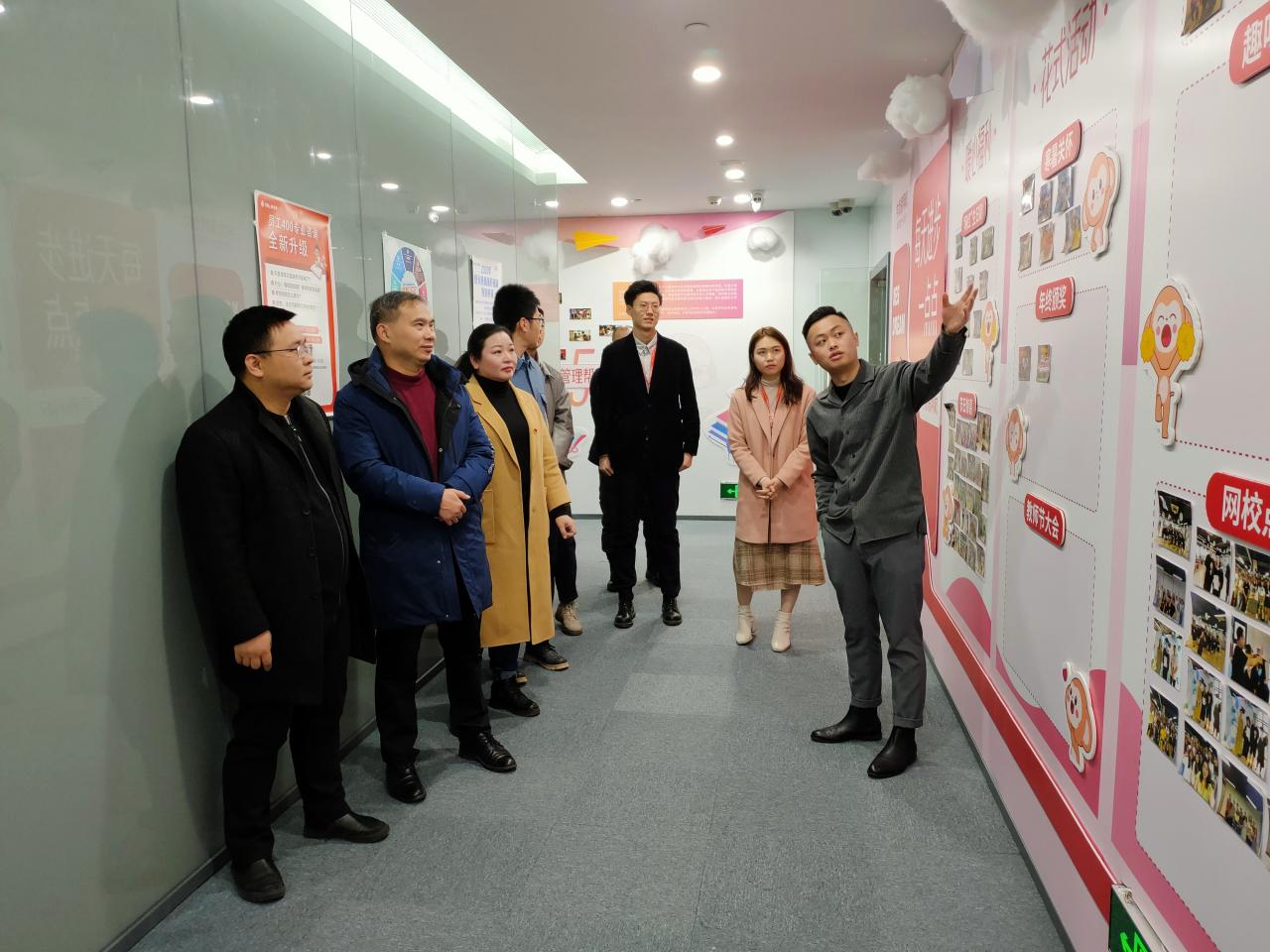 在学而思网校走访中,学而思网校武汉分校辅导选聘部负责人李豪老师对学院一行老师的到来表示欢迎,对集团的发展历程和前景进行分享。学院老师也就校企合作表达意见,希望后期能够强化校企联动,搭建优质平台,形成常态化的优质人才培养模式。正在实习的杨晨同学就自己参加实习的工作内容和感受与老师们进行交流,分享了自己在这里成长体验的生活点滴。