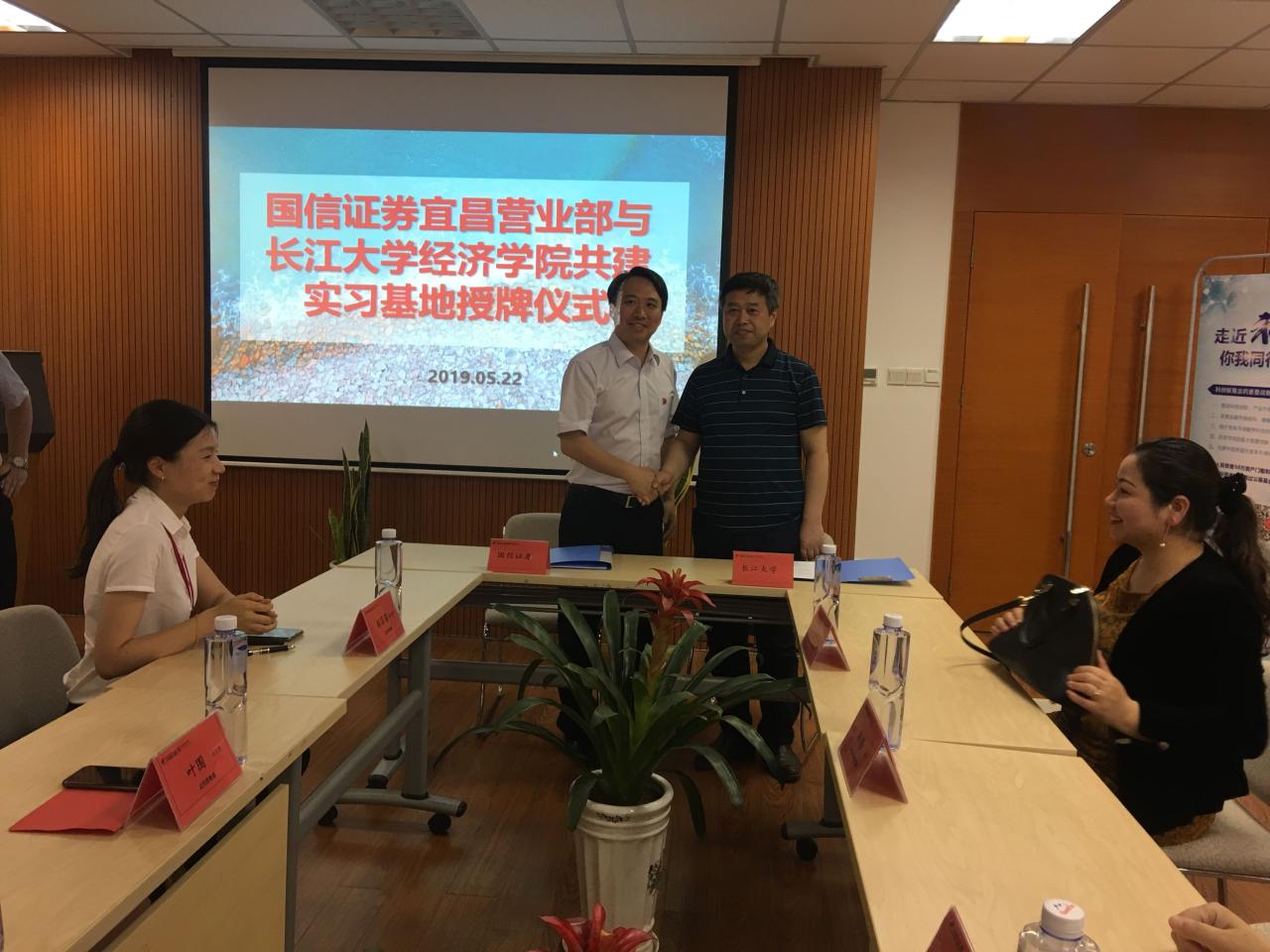 为搭建优质实习基地,建立良好校企合作关系,2019年5月22号,304永利集团官网入口经济学院与国信证券宜昌营业部共建实习基地授牌仪式正式举行。院长伟鸿率队,副院长徐辉、副书记王中梅、学工办主任平先锋参与合作签署仪式,作签署仪式在国信证券宜昌营业部举行。