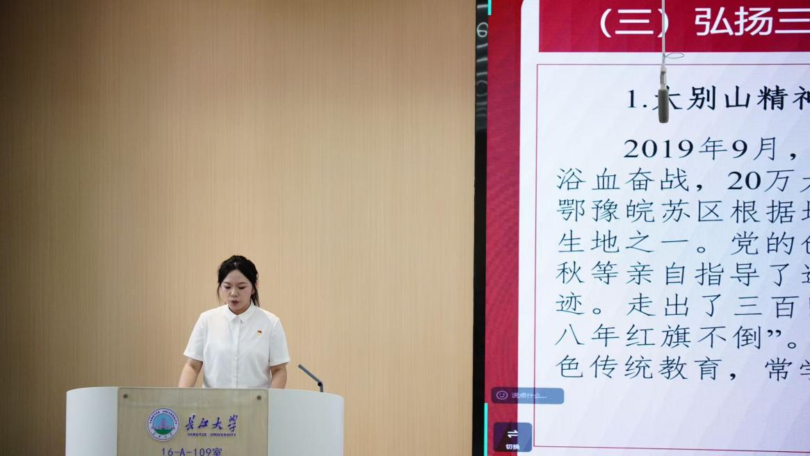 理论学习环节,研究生第一党支部党小组四组副组长凌澜卿用“以三大精神铸魂,以八项规定正风,奋力谱写现代化新篇章”为题开展专题讲解。她深入阐释大别山精神的革命传承,抗洪精神的斗争意志,以及抗疫精神的时代担当,同时结合中央八项规定中改进调查研究、精简会议活动等具体要求,剖析高质量发展背景下青年党员的行动方向。她呼吁大家要结合三大精神内涵,发挥青年党员的先锋模范带头作用。